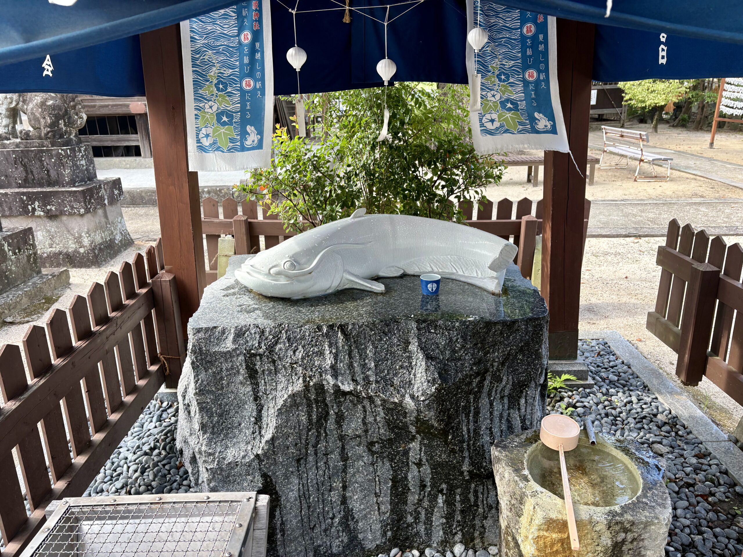 乙姫といえば、お伽話では「亀」に乗って現れます。しかし、ここ嬉野で彼女に寄り添うのは、亀ではなく**「白なまず」**です。 遠い異界へ連れ去る亀ではなく、足元の水の揺らぎを、大地の微かな震えを敏感に察知するなまず。この神社が、空想のような亀を捨て、生々しい触覚を持つなまずをその象徴に据えたことに、私は深い納得を覚えます。